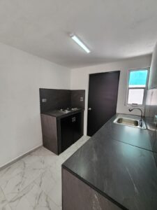 Cocina con barra y melamina mina