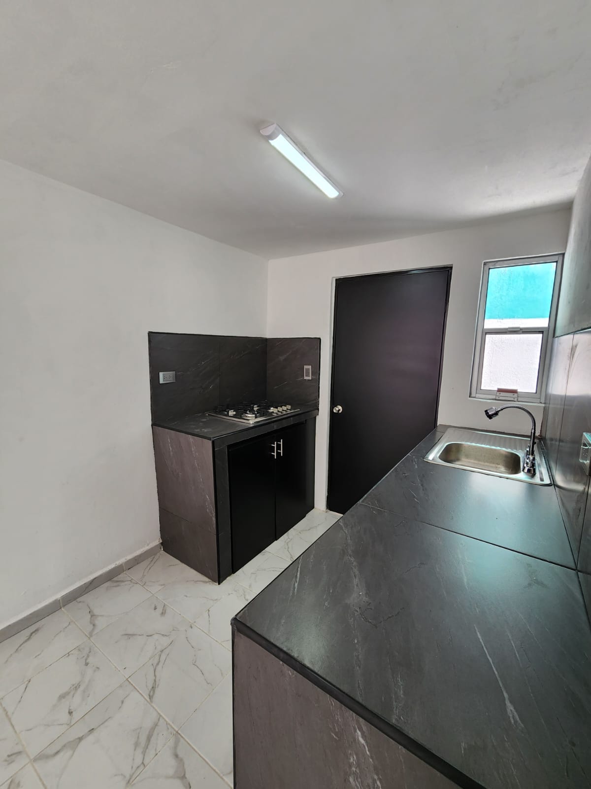 Cocina con barras de concreto y melamina